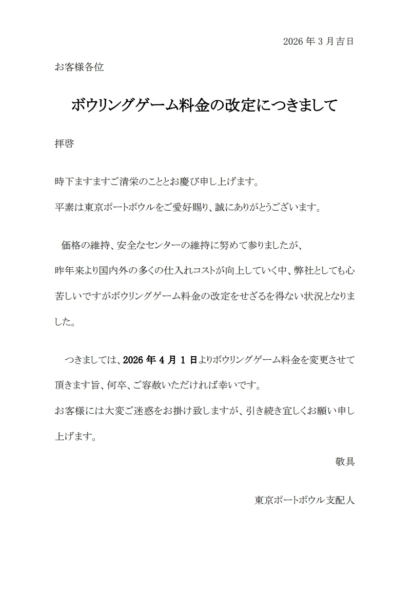 料金改定についてのご案内